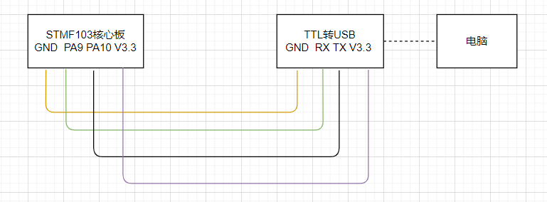 1. Hardware preparation and wiring stm32 core board, USB to TTL module, DuPont line, computer When downloading STM32F103 pins, BOOT0 is set to 1, BOOT1 is set to 0, press the reset button (the physica...