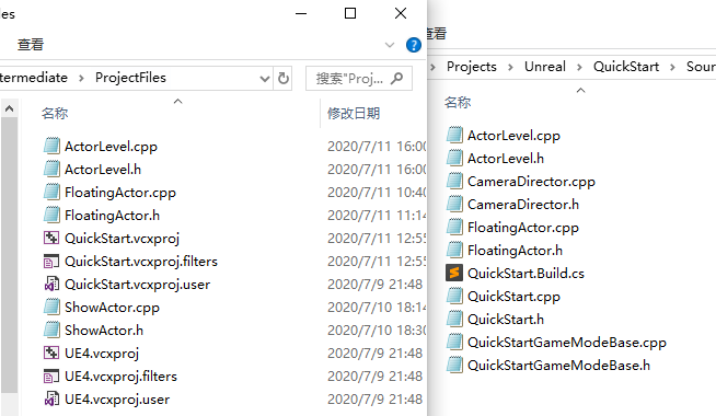 For example, the project "QuickStart", there must be .h and .cpp files in the following two locations Unreal\Project name\Source\Project name Unreal\Project name\Intermediate\ProjectFiles Th...