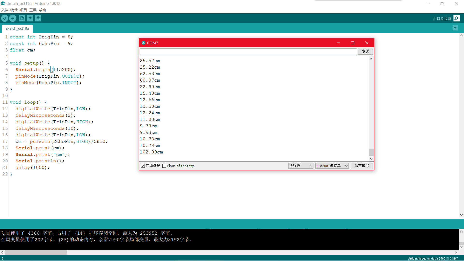 sprintf(buf,"dis=%fcm\r\n",dis);