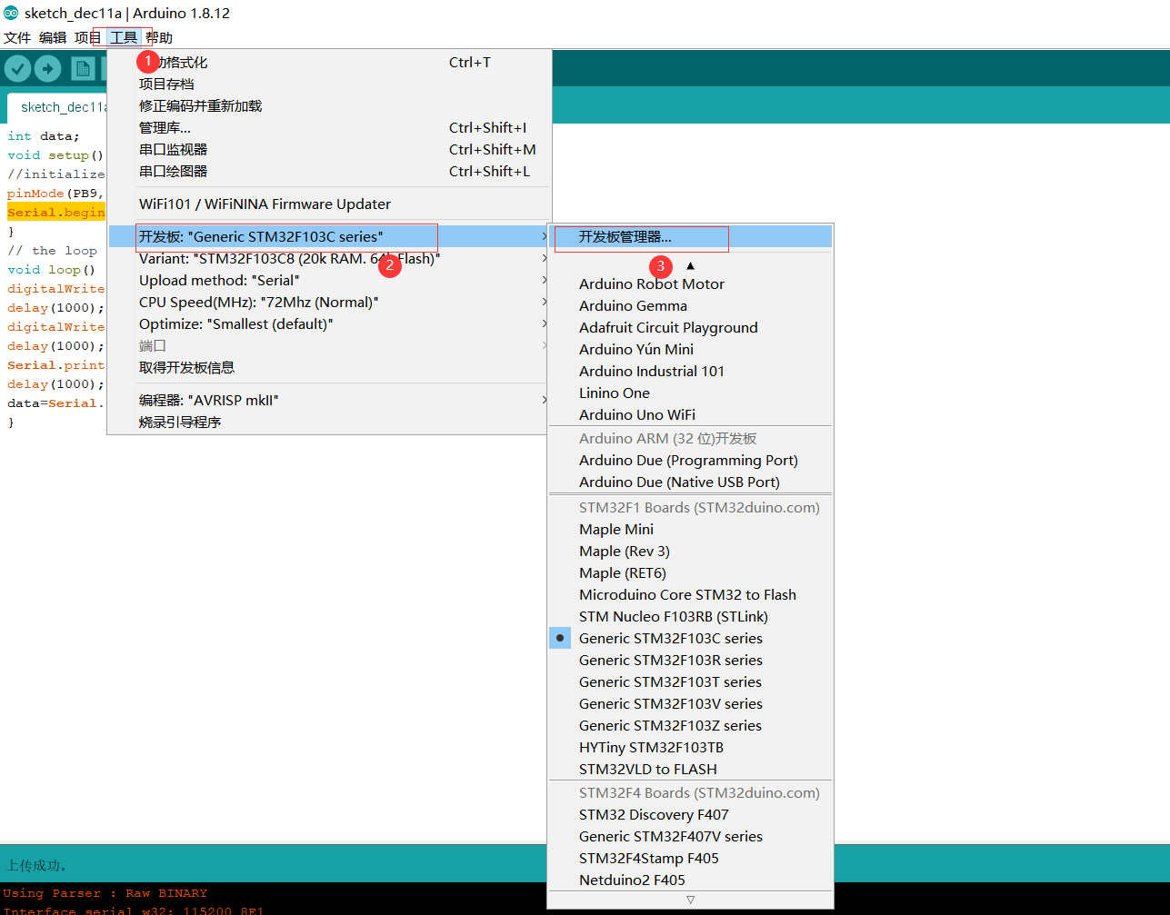 Article catalog Brief introduction to Arduino Ide First, install Ardunio IDE and related software support libraries Second, the serial communication program of STM32 board is completed in Ardunio 1. C...