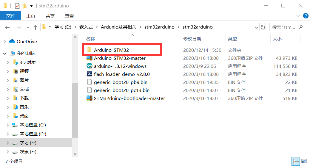 3. Copy the Arduino_STM32 of the package file to the HareWare under the Arduino IDE installation directory, I am C: \ Program Files (x86) \ Arduino \ Hardware. These profiles are written abroad, and his latest configuration files are on the github website https://github.com/rogerclarkmelbourne/ARDUINO_STM32.