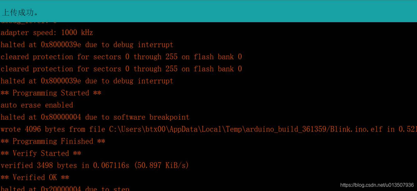 Click Upload to wait for the upload to succeed, then open the serial monitor to see the flash status output.