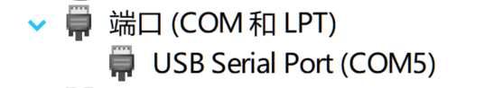 After downloading and installing the driver, a serial device and a universal serial bus device appear in the device manager.
