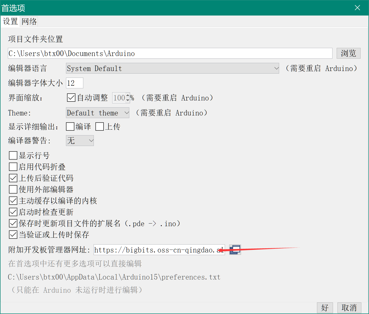 1.Arduino->File->Preferences->Additional Development Board Manager URL