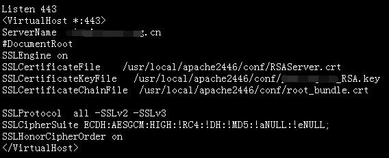 Remember to turn on: LoadModule ssl_module modules/mod_ssl.so —— SSL module
