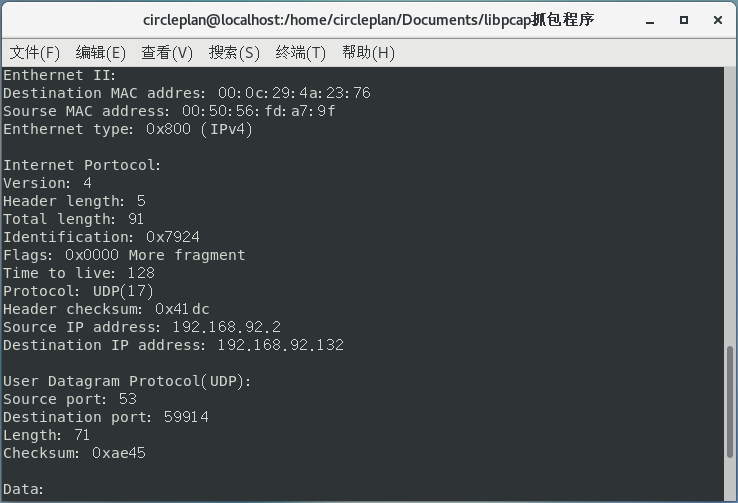 In this way, we parse the PDU header of each layer and output the meaning of the corresponding information in each header.