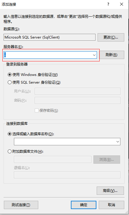 Enter your own server name here, there are two login methods, Windows and authentication logins. This is the same way as you create a database.