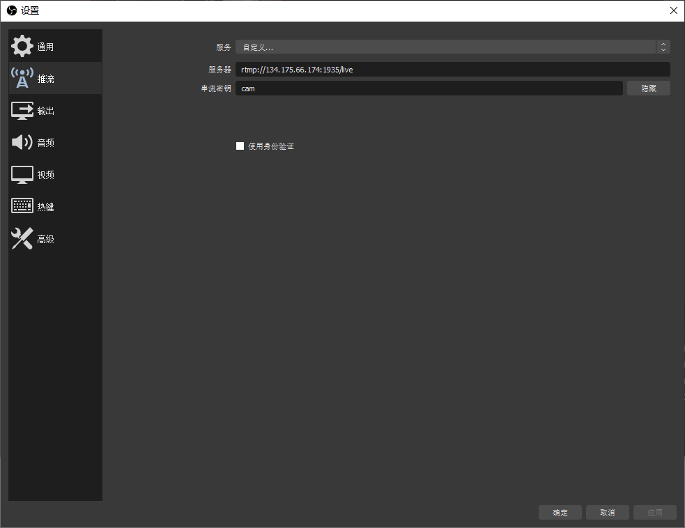 application cctvf {#rtmpPush stream request path (remember that the wrong path will not push upstream)
