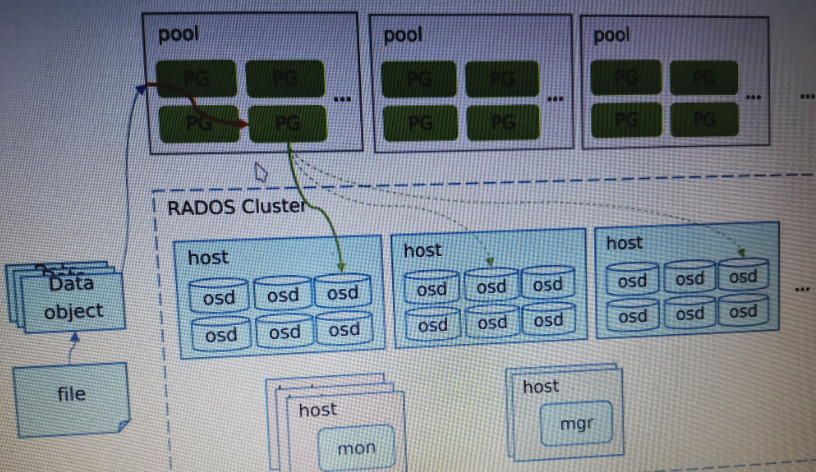 Ceph does not directly use the CRUSH algorithm to map the data objects to the OSD one by one, which will be very complicated and inefficient. Moreover, Ceph users don't need to know how the actual CRUSH algorithm works, they only need to care about where the data is stored. Ceph hides the complexity of the CRUSH algorithm through two logical concepts, namely storage pool and PG, and provides users with an intuitive object storage interface, namely RADOS.