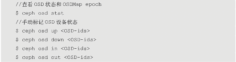 The specific state of the OSD device may be in the cluster (in) or not in the cluster (out), and normal operation (up) or abnormal operation state (down). The in, out, up, and down states of the OSD device can be combined at will, but when the OSD is in both in and down states, it means that the cluster is in an abnormal state. When the OSD is almost full, it will also be marked as full. We can query the status of OSDMap through the following commands, or manually mark the status of OSD devices: