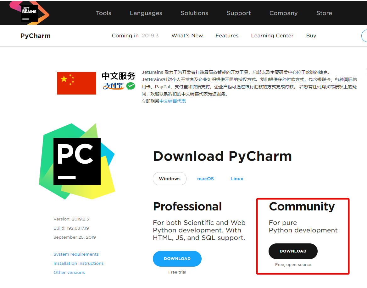download link:https://www.jetbrains.com/pycharm/download/#section=windows