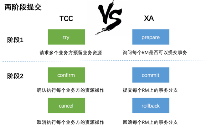 The two-stage submission of TCC and XA has the same effect and the same effect. The following figure lists the comparison between the two.
