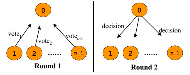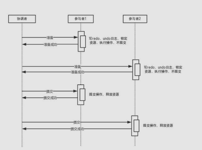 As the name suggests, two-phase commit is divided into two phases when processing distributed transactions: voting (voting phase, sometimes called prepare phase) and commit phase.