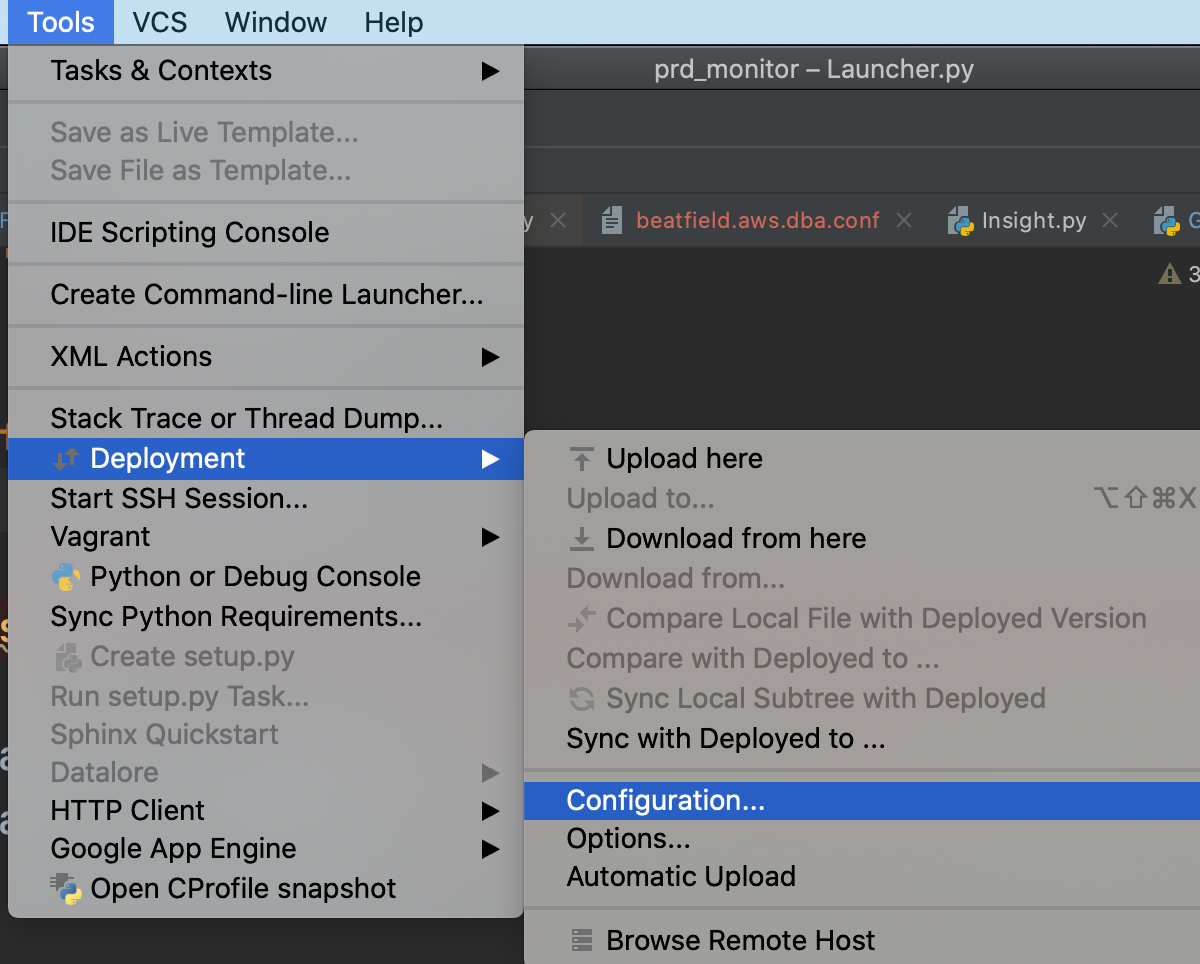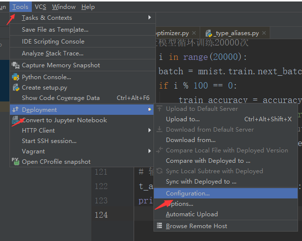 table of Contents: Install pycharm Configuring pycharm remote debugging Use test First, install pycharm (omitted) Second, configure pycharm remote debugging 1, menu --->Tools--->Deployment--->...