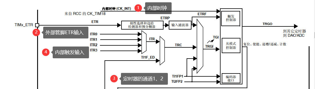 1. Block diagram of timer clock source You can see from the picture that the timer has 4 clock sources, (1) Internal clock; (2) External clock mode 1, timer channel 1, 2; (3) External clock mod...