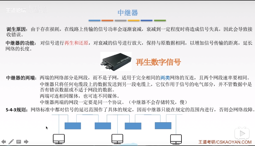 Repeater: [No store and forward] [Regenerated digital signal] Hub: [multi-port repeater] [regeneration, amplifying signal] [The hub cannot divide the conflict domain】【Hosts connected to the sam...