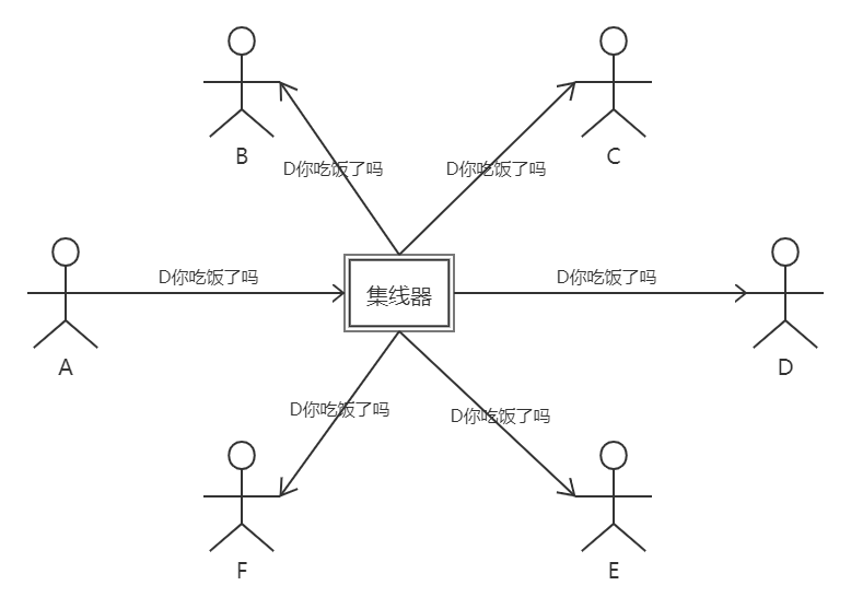 The hub works at the physical layer. It uses a broadcast method to copy every byte it receives to all other ports, that is, the data packet sent by the client can be seen by everyone.