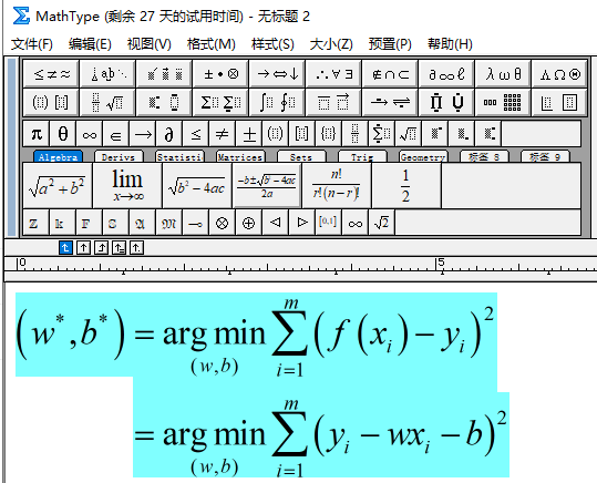 1. Enter the Latex format formula on the mathtype and copy it to the word Latex formula: \begin{align} \left(w^{*}, b^{*}\right) &=\underset{(w, b)}{\arg \min } \sum_{i=1}^{m}\left(f\left(x_{i}\ri...