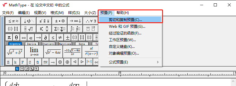 Open the formula in the Word document, click [Preset], Click [Cut and copy preset】 Click [Mathml or tex】,choose【LaTeX 2.09 and later], Click [Sure], Select the formula for copying. 【Ctrl+A】 【Ctrl+C】 P...