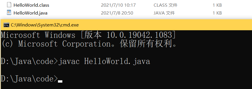 Enter Javac HelloWorld.java, compile the Java file into a zona code file, generate a Class file, as shown