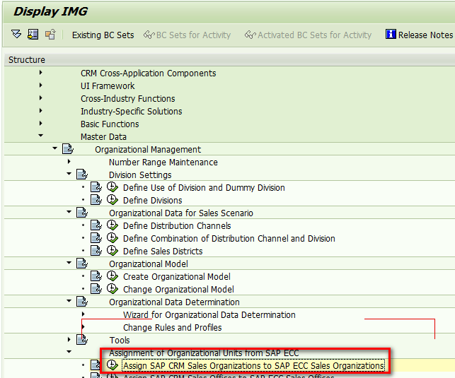 In this customizing below, you can define the mapping relationship between ERP sales organization and CRM org: For example, ERP sales org 0001 is mapped to CRM O 50040102: The mapping relationship is ...