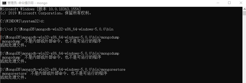 'Mongodump' is not internal or external command, nor is it a runable program Or batch files. 'MongoStore' is not internal or external command, nor is it a runable program Or batch files. When MogoDB b...