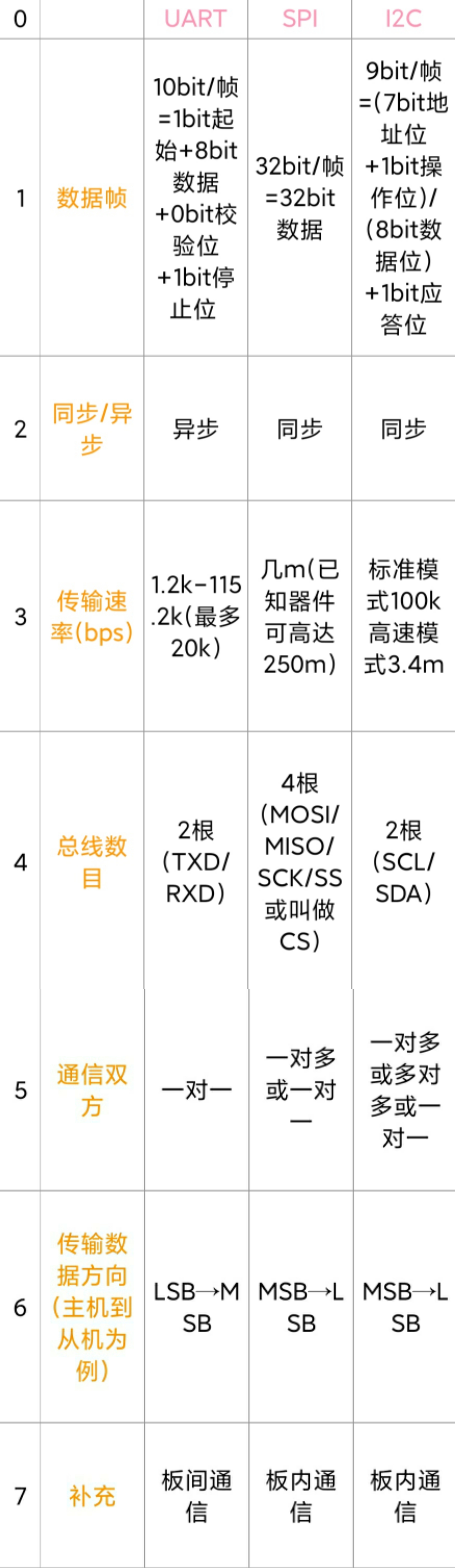 As shown below Some features should be added UART has a long transmission distance because there is no clock line, up to 15m, but the speed is very slow SPI supports full-duplex communication, simple ...
