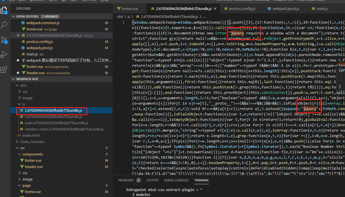 From the packaging results, you can see that the modules loaded on demand are packaged into 0.js.