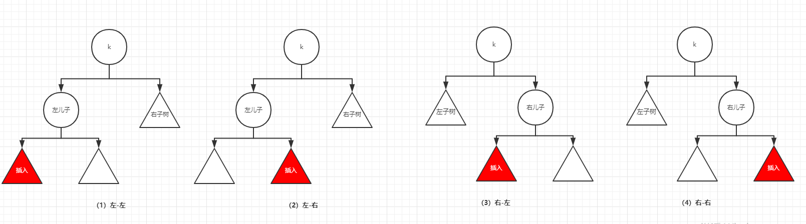 The rotation of the tree has two basic operations, left-handed (counterclockwise rotation) and right-handed (clockwise rotation).