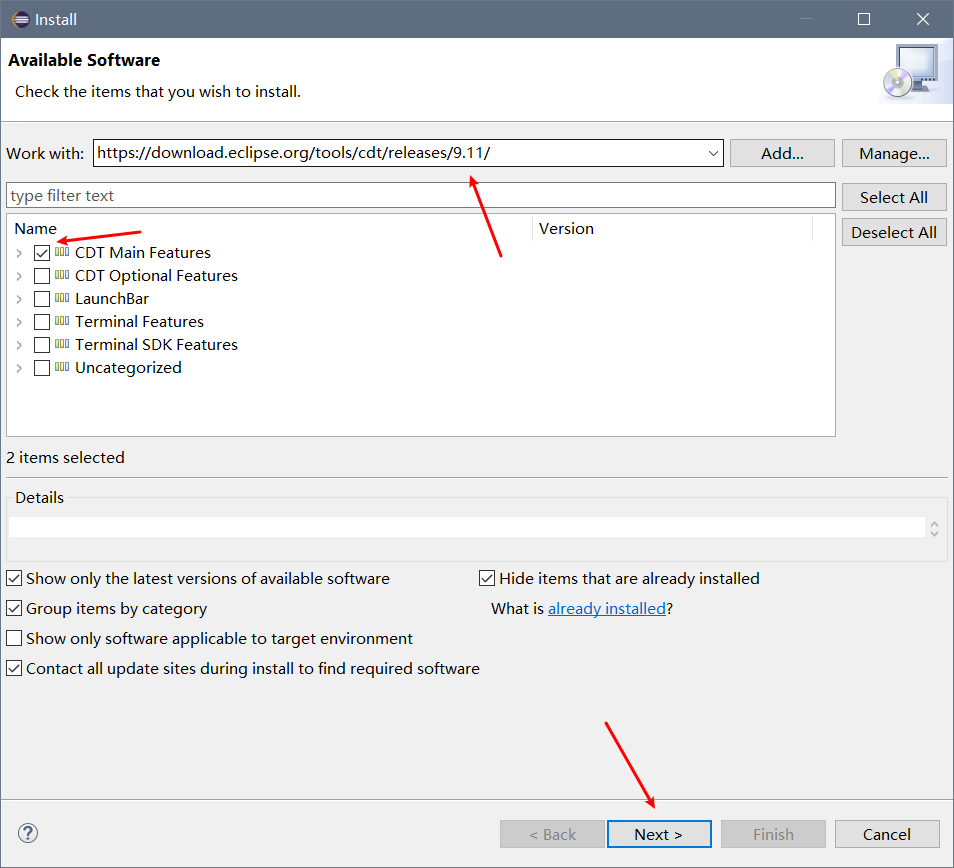 First, eclipse installation CDT 1、download. Windows 10 64 bit can be directlyclick to download 2、add Open eclipse and click on the menu "Help--->Install New Software" Click the install di...