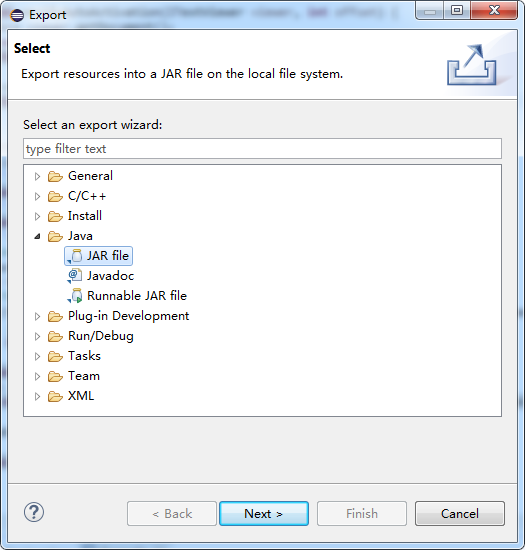 6. The following can be exported, right click on the project -> Export, select JAR file.