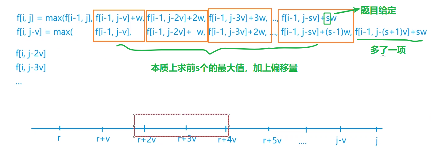 if(hh <= tt) f[k] = max(f[k],g[q[hh]] + (k - q[hh]) / v * w);
