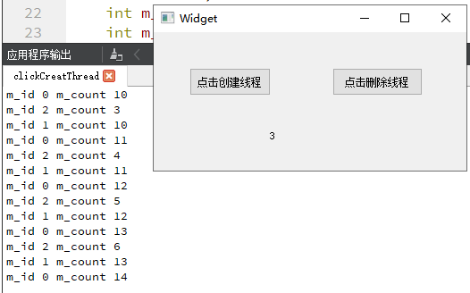 Click Create Thread, the program will create a thread and print the increment number every 1s. Click Delete Thread to delete the most recently created thread. The number below shows the current number...